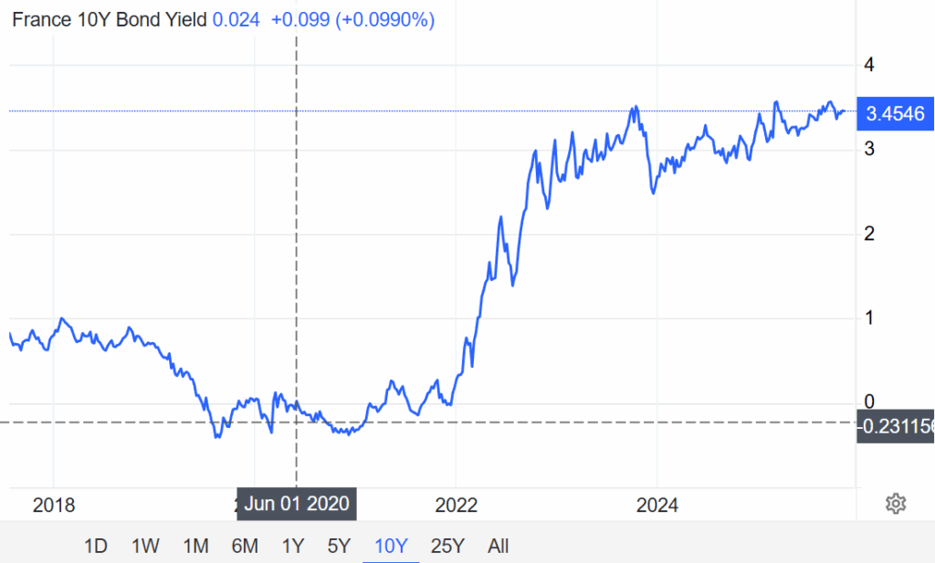 Between 2022 and 2024, the ECB increased its key interest rates from 0% to 4%, all market rates in the euro area surged, which made French bonds attractive again, investors return to obtain a correct yield without taking too much risk.