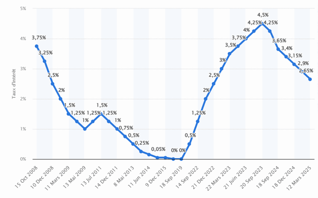 Fluctuation of ECB interest rates 2008-2025